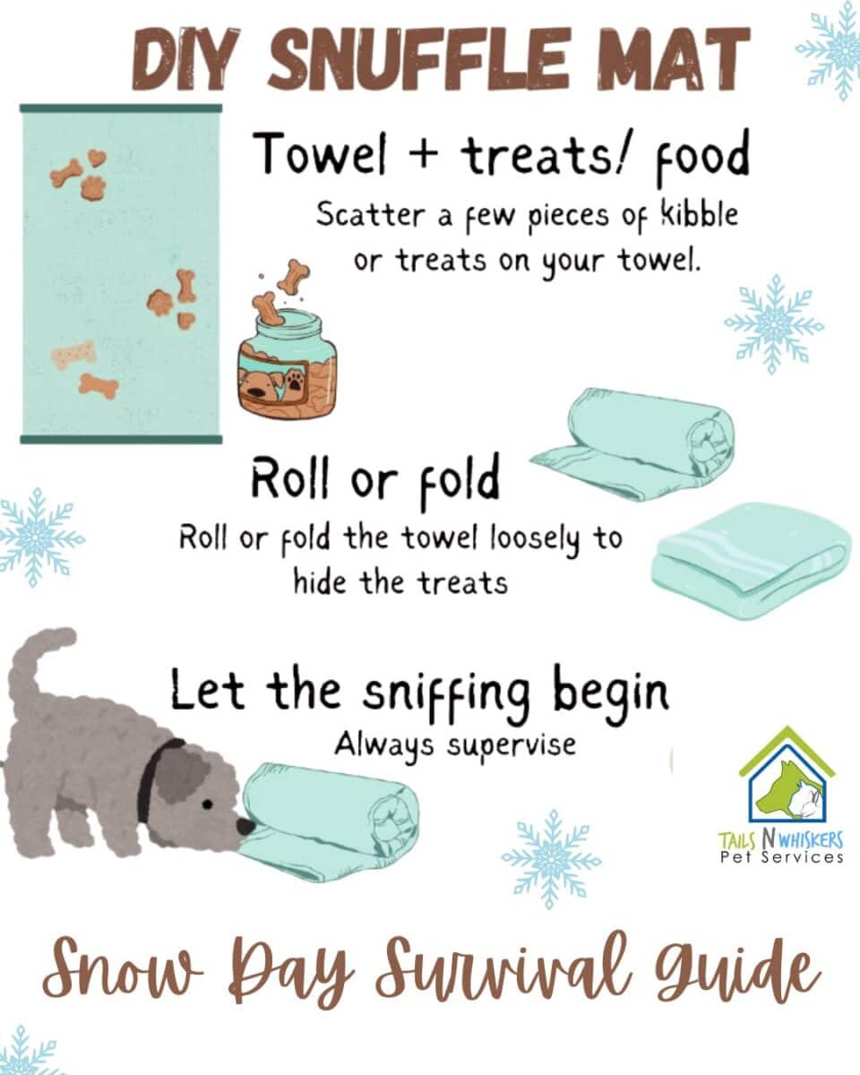 Of course, cabin fever is REAL, especially if you have a high-energy pup! Indoor activities like snuffle mats, scatter feeding, and frozen Kongs can help pass the time. Snow days are awesome days to take advantage of bonding time with indoor training, scent work, and hide-and-seek games!